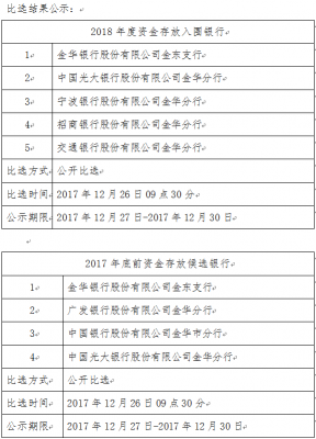 2018年度資金存放入圍銀行及2017年底前資金存放銀行比選結(jié)果公示