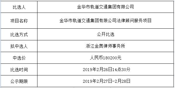 (金華市軌道交通集團有限公司法律顧問服務項目)中選公示