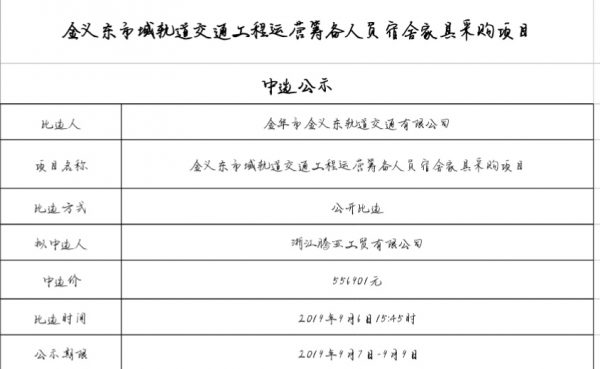 金華市金義東軌道交通有限公司運(yùn)營(yíng)2026-2028年度場(chǎng)段司機(jī)公寓床上用品采購(gòu)項(xiàng)目中標(biāo)候選人公示