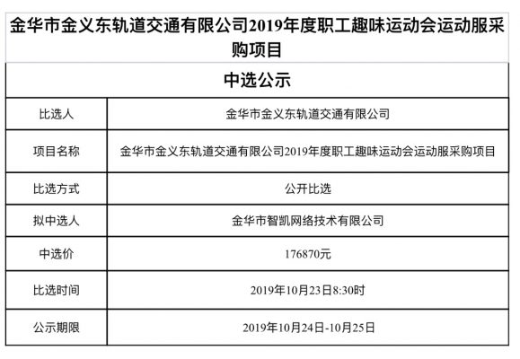 金華市金義東軌道交通有限公司運(yùn)營環(huán)境長效管理系統(tǒng)項(xiàng)目中標(biāo)候選人公示