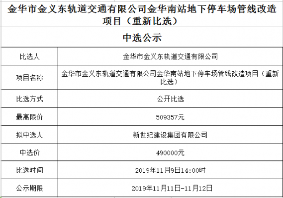 中選公示(南站地下停車場(chǎng)管線改造)