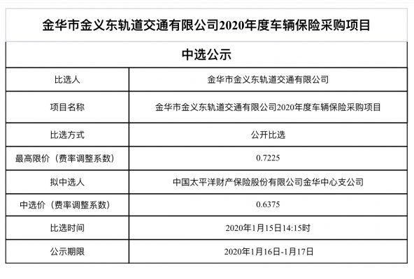 金華市金義東軌道交通有限公司運營環(huán)境長效管理系統(tǒng)項目中標候選人公示