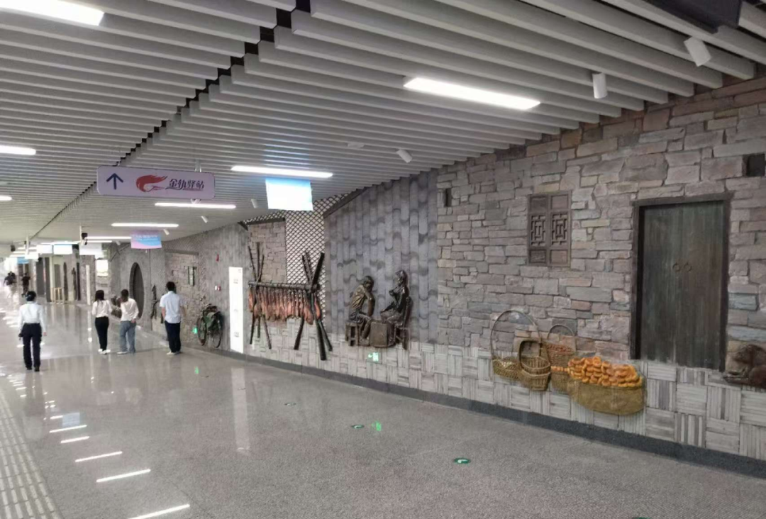 在高鐵換乘通道中的傳統(tǒng)文化長(zhǎng)廊,有老金華的故事,也有享譽(yù)全國(guó)的金華特產(chǎn)—金華火腿和金華酥餅,不僅向外地游客展示了金華的傳統(tǒng)文化魅力,也讓歸鄉(xiāng)的游子感受到家鄉(xiāng)的溫暖。